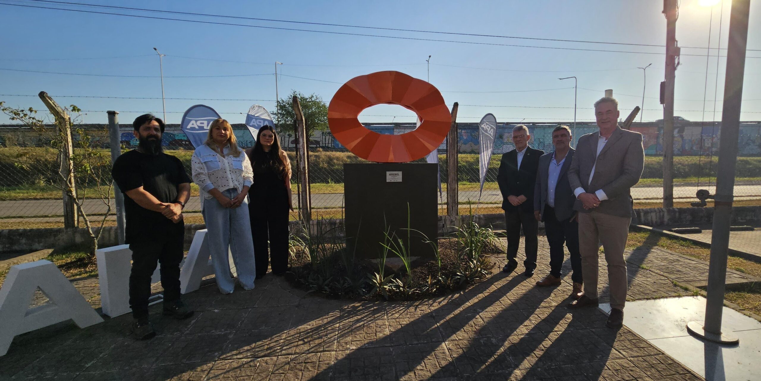 En el marco del acto por el Día del Empleado de la APA, la representantes de la Fundación Urunday, de manera conjunta con autoridades de la APA llevaron a cabo el emplazamiento en el frente de la sede del organismo provincial, de la escultura Nº 678 de Resistencia, Ciudad de las Esculturas, denominada «Arrebol», realizada por el artista mexicano Carlos Monge, creada durante la Bienal del Chaco 2024.