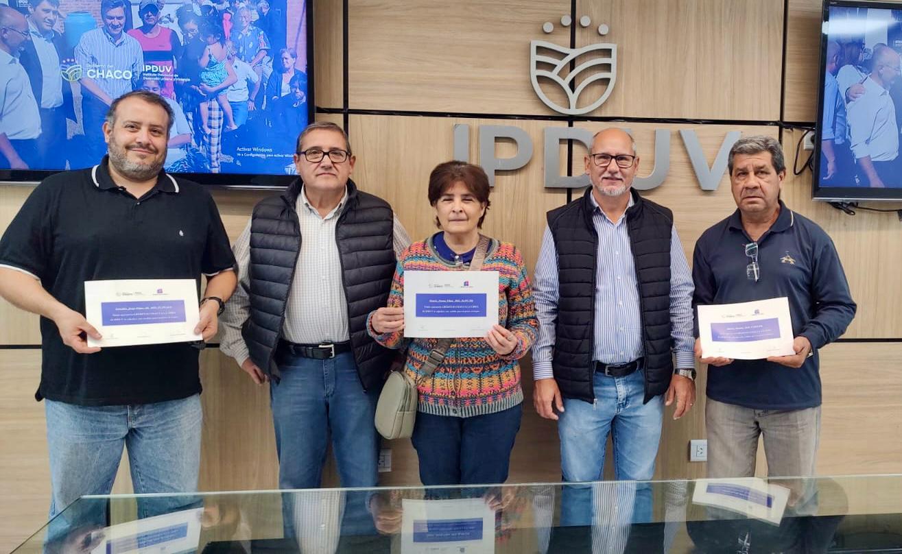 El presidente del Instituto Provincial de Desarrollo Urbano y Vivienda (Ipduv), Fernando Berecoechea, junto al vocal Daniel Monti, entregaron los certificados del programa “Chaco a la obra”, donde los adjudicatarios contarán con la ayuda económica acordada. La ceremonia se llevó a cabo en la sede del Instituto, ubicada en Avenida Sarmiento 1801.