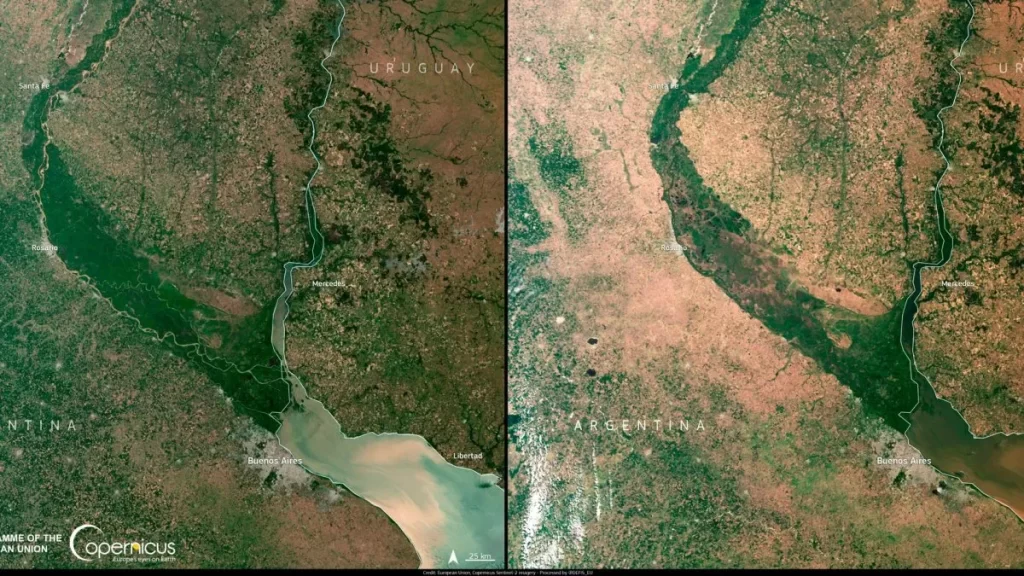 Uno de los factores clave detrás de la sequía es la influencia del fenómeno climático de La Niña, que ha persistido durante tres años consecutivos, algo inusual según los meteorólogos. La Niña tiende a generar condiciones más secas de lo normal en el centro y sur de Sudamérica, exacerbando los efectos de la sequía. Los expertos también señalan que el cambio climático está intensificando estos eventos, aumentando la frecuencia y la duración de las sequías en la región.