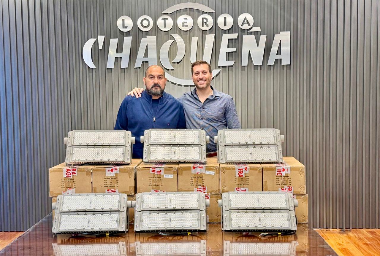 Con el objetivo de seguir acompañando el desarrollo deportivo en toda la provincia, el presidente de Lotería Chaqueña, Lucas Apud Masín, entregó reflectores LED al Club Juventud de El Sauzalito, una institución emblemática del norte chaqueño.