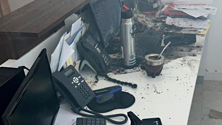 La explosión generó apenas daños materiales en el escritorio de la secretaria. Un segundo paquete fue detonado por la Policía, pero se descartó que tuviera explosivos.