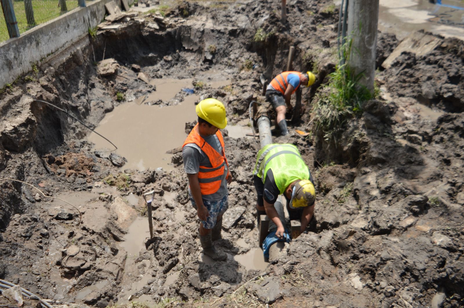 Durante la jornada de ayer, cuadrillas de la Gerencia de Servicios trabajaron intensamente para reparar múltiples roturas en cañerías de 500, 200 y 110 mm. Estas tareas, de gran complejidad, demandaron más tiempo del previsto debido a la presencia de infraestructura subterránea y aérea en el área de intervención, como caños pluviales, redes de fibra óptica y el tendido eléctrico.